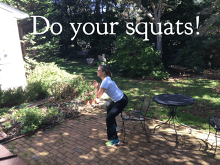 Everyone of my workouts include some form of squats. Squats are a wonderful functional exercise. They strengthen your glutes, hamstrings, and quadriceps. Once you are able to perform a basic squat, you can start adding weights for even more benefit!