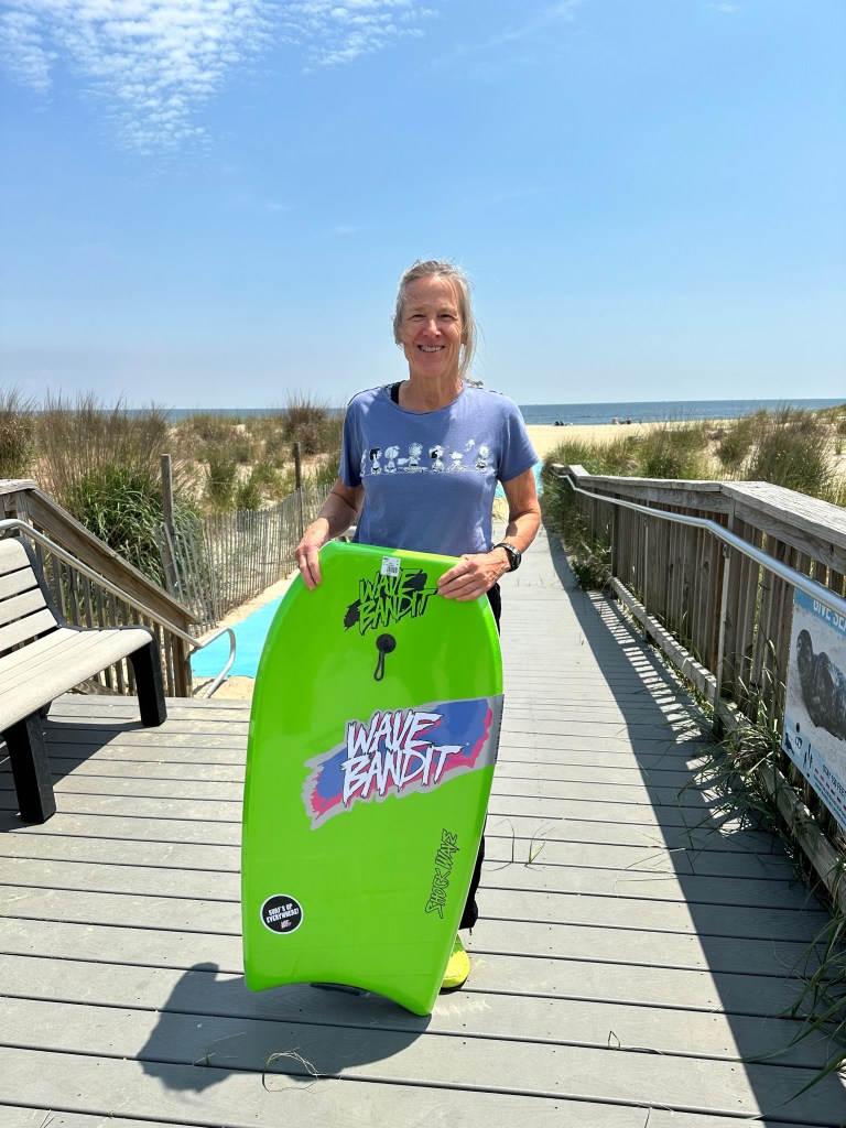 Our plungette season is over. The ocean temperature is 62 degrees. It is no longer a therapeutic cold plunge. It is now beach season. I just listened to Shelby Stanger’s podcast Wild Ideas Worth Living. She interviewed the Boogie Board Wave Chasers They are a group of women in San Diego who are between the ages of 55 and 95. They meet 5 times a week to Boogie Board. It is a great workout that uses all the muscles of the body and makes you feel like a kid again! This is will be a good compliment to OutdoorFit and my track workouts. I think I have an old boogie board in the garage that I can dust off and take for a ride. Want to join me? I am excited!