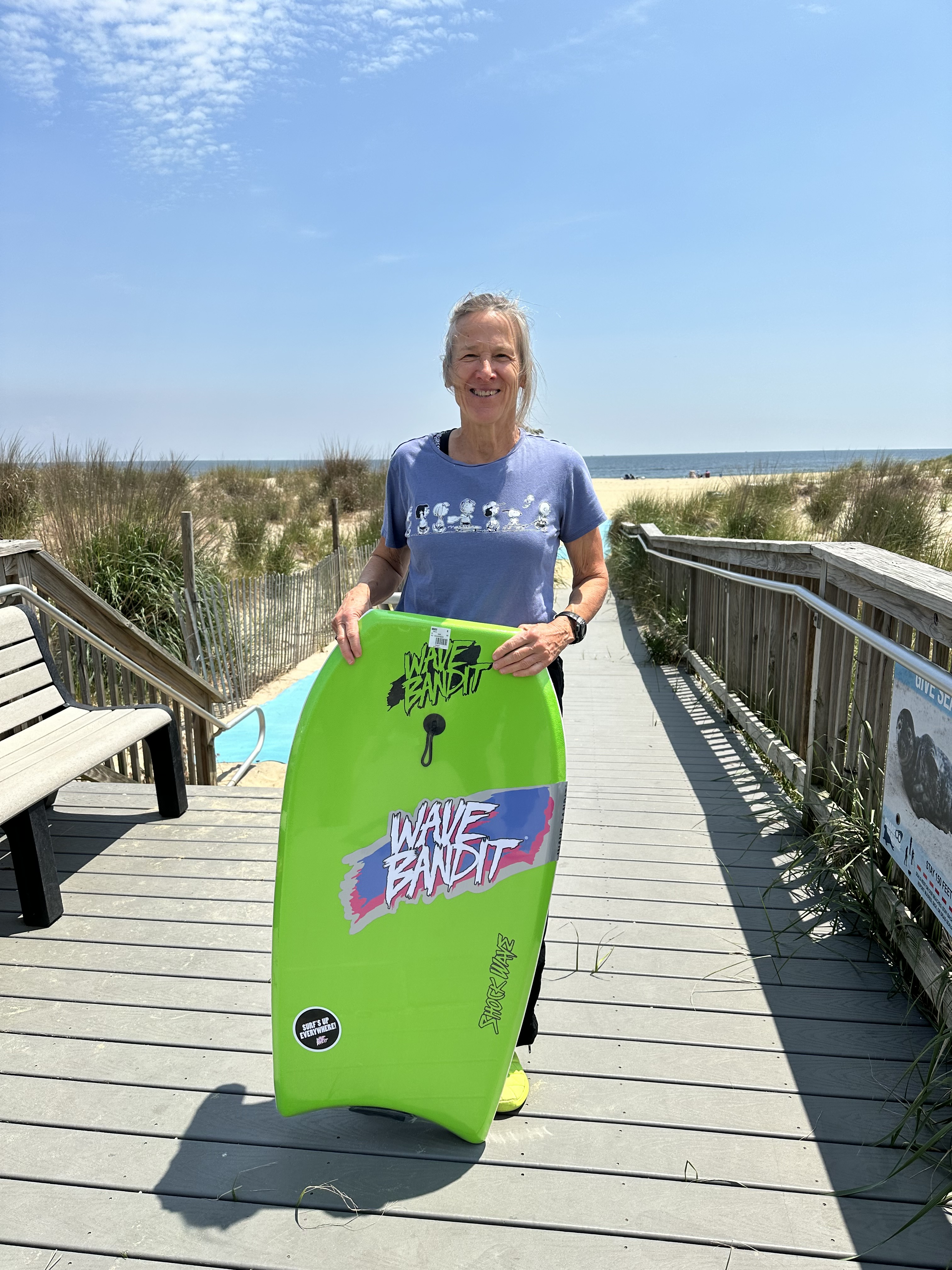 Our plungette season is over. The ocean temperature is 62 degrees. It is no longer a therapeutic cold plunge. It is now beach season. I just listened to Shelby Stanger’s podcast Wild Ideas Worth Living. She interviewed the Boogie Board Wave Chasers They are a group of women in San Diego who are between the ages of 55 and 95. They meet 5 times a week to Boogie Board. It is a great workout that uses all the muscles of the body and makes you feel like a kid again! This is will be a good compliment to OutdoorFit and my track workouts. I think I have an old boogie board in the garage that I can dust off and take for a ride. Want to join me? I am excited!
