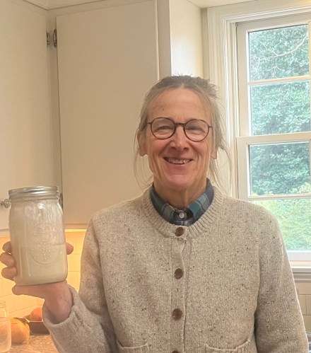 I just finished Rob Bell’s Where did you park your spaceship? Heen Gru-Bares, the main character, loves sourdough rosemary bread. After listening to the 12 hour audio book, I feel like sourdough rosemary bread is in my cells. I need to make the bread! Making sourdough bread is a big deal. You don’t need yeast. It rises with the natural fermentation process. I hope it works out. I am making the starter, which takes at least 7 days. You need to feed it daily and keep it warm. Ideally it should stay between 75-80 degrees, so it ferments properly. I am keeping it in the oven with the light on for a little heat, It is a commitment and a fun winter project!